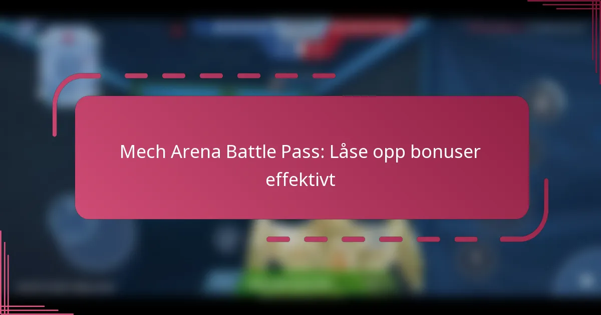 Mech Arena Battle Pass er en sesongbasert funksjon som gjør det mulig for spillere å låse opp eksklusive belønninger og bonuser gjennom spillingen. Ved å fullføre ulike utfordringer og oppdrag kan spillere gå opp i nivåer for å tjene unike gjenstander som forbedrer spillopplevelsen deres, inkludert skins, in-game valuta og spesielle evner. For å låse opp disse bonusene effektivt, bør spillere fokusere på spesifikke spillmoduser, fullføre daglige og ukentlige utfordringer, og samarbeide med lagkamerater for å maksimere belønningene sine.